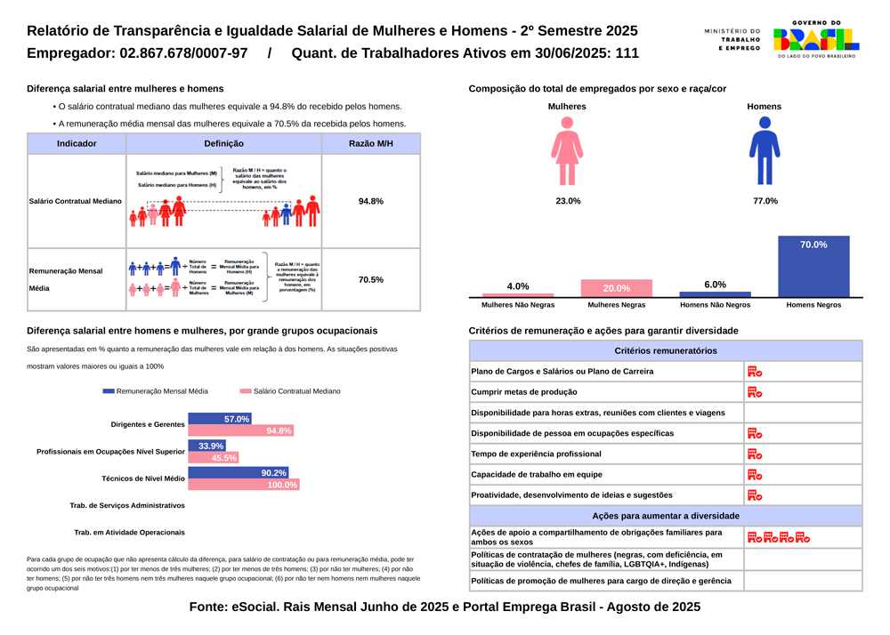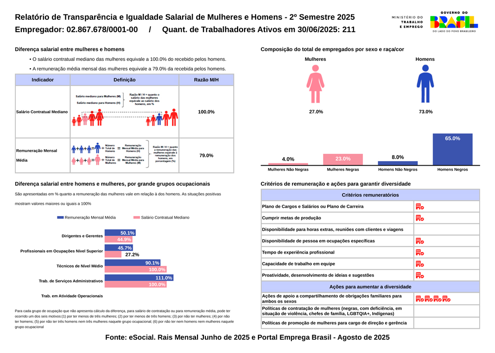 A NIP do Brasil tem o prazer de disponibilizar informações abrangentes sobre o Relatório de Transparência e Equiparação Salarial entre Gêneros para o 2º semestre de 2025.