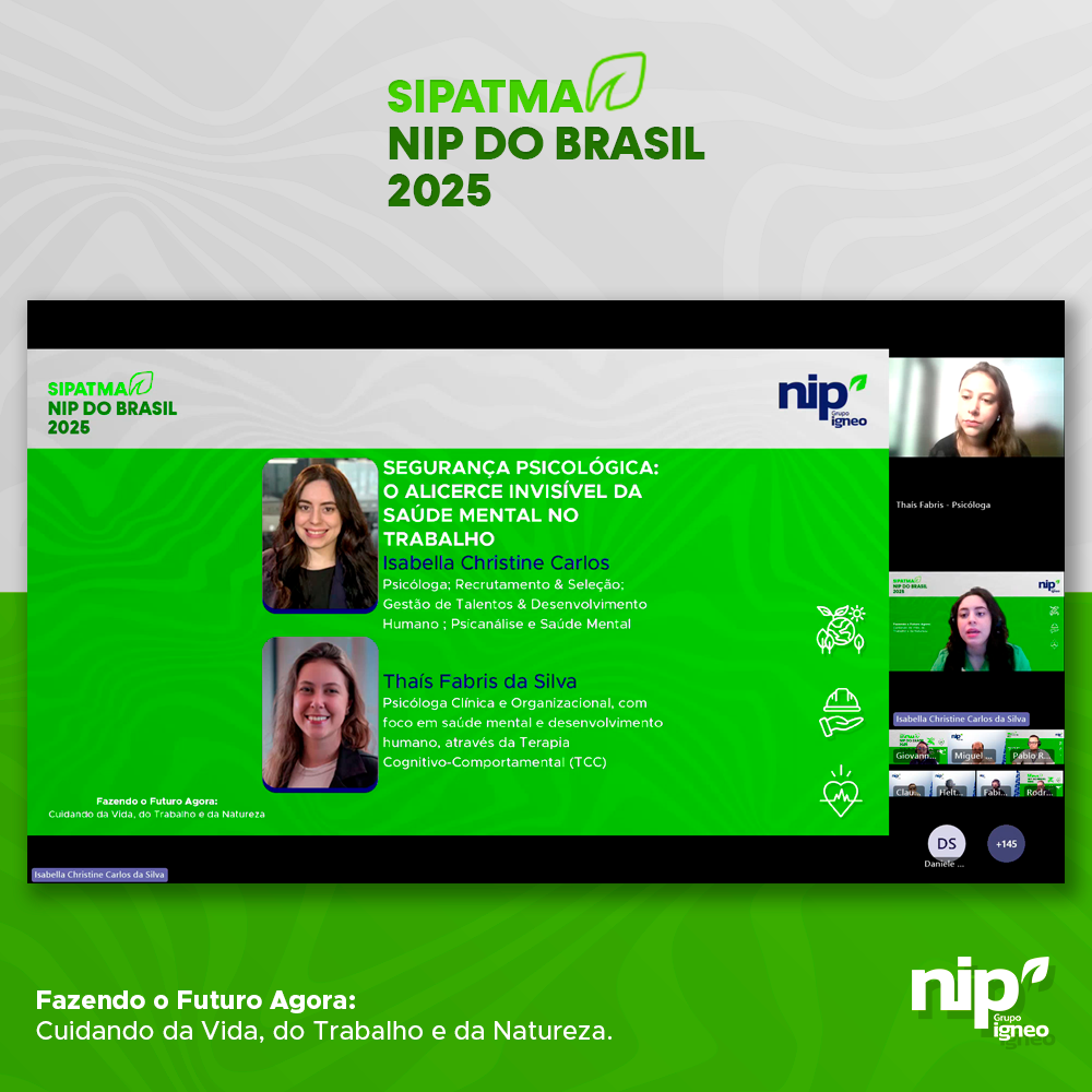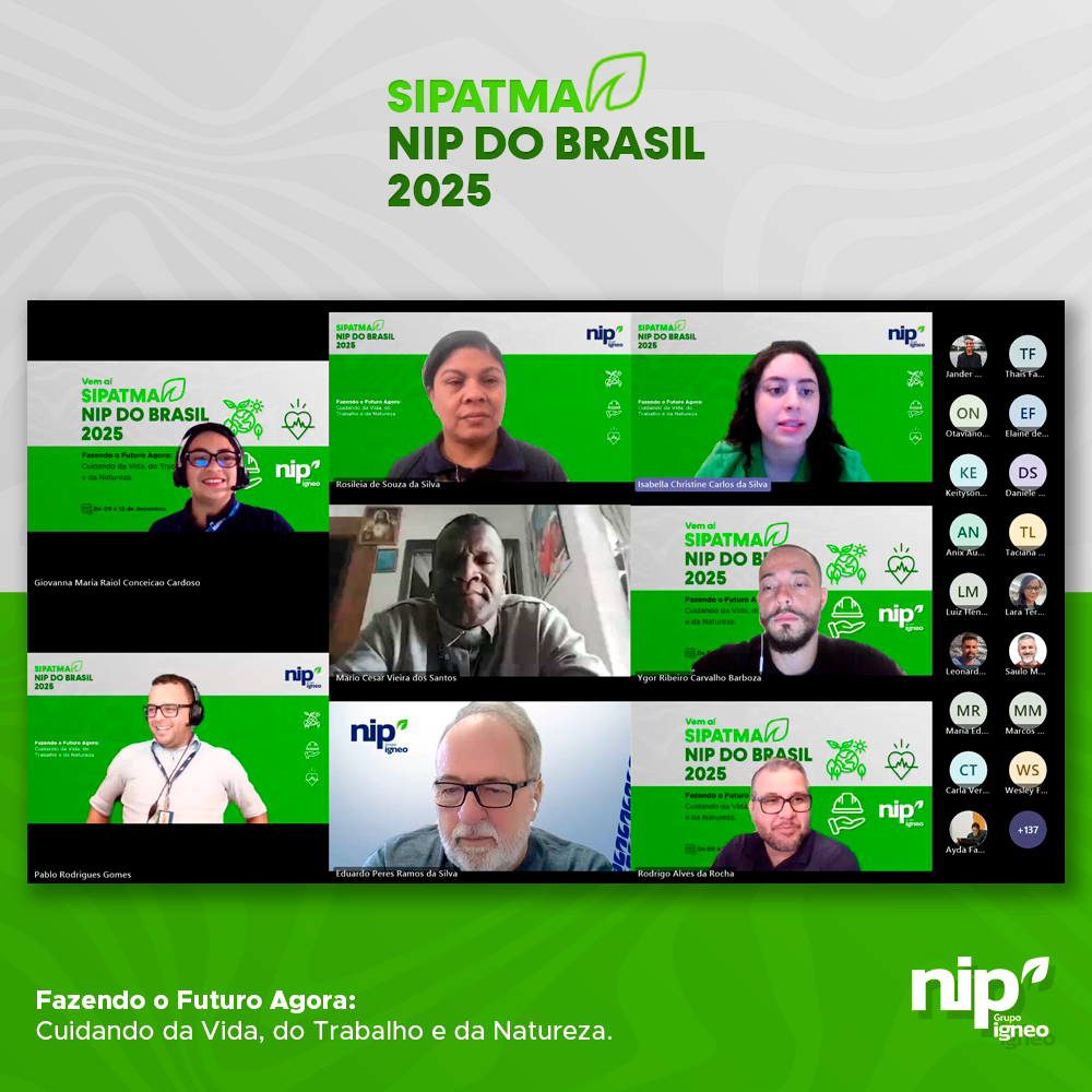 Encerramos a SIPATMA NIP do Brasil 2025, uma semana dedicada à conscientização, ao aprendizado e ao fortalecimento da cultura de segurança, sustentabilidade e bem-estar entre nossos colaboradores. Foram quatro dias de programação intensa, com temas essenciais para o nosso dia a dia profissional e pessoal, reforçando o compromisso da empresa com a prevenção e o cuidado com as pessoas.